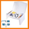 Description: FOLD LAP TABLE @Lap Desk is great for using in the car or for reading and writing in bed @Portable and practical option for kids and adults alike @Store some stationery and books or anything you like. @Fold it to a briefcase size when not in use. FOLD 45.5*32.5*6cm UNFOLD 45.5*32.5*19cm The SmartLap Lap Desk is an amazing solution for kids on the go This portable lap desk offers a large writing surface and opens up to a roomy 3 compartment storage container that is great for storing all your school and craft supplies The integrated handle makes the desk easy to carry The large center section is specially designed to store items such as paper, coloring books, calculators, computer discs and so much more 2 smaller sections provide a secure storage place for pens, pencils, crayons, rulers, scissors and other writing supplies The legs of the desk fold down flat to provide easy storage when not in use.Great for homework, crafts, coloring and more at home and in the car! Material: PP